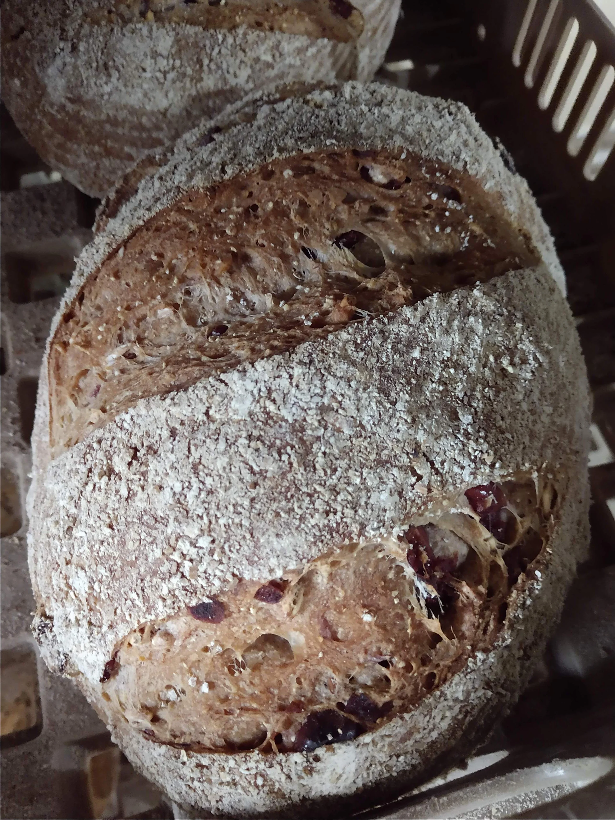 Packed with cranberries and walnuts, this multi-grain loaf can be enjoyed on its own for a meal or a snack! Try it alongside our cheeses and charcuterie, or with our Cultured Butter. For sandwiches, try it with egg salad, chicken salad, or roasted pork. We also highly recommend using this loaf for the best french toast!